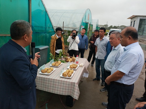在“育秧棚二次利用—稻草覆盖种植马铃薯技术”示范棚现场,王启增副场长指着硕大的马铃薯说“今年第一年示范这个技术,亩产预测就达到了5000斤左右,一栋大棚就能让农民增收3000元左右,水稻覆盖种植的马铃薯还具有表面光洁、口感好的特点,农户都很认可,明年一定要大面积推广,把农场闲置的育秧棚都利用起来,下一步我们还想和学校共同研发适合育秧棚马铃薯种植的机械装备,这样的好技术一定要让农户都用上!”